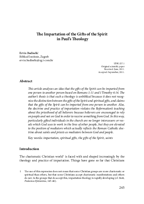 Pdf The Impartation Of The Gifts Of The Spirit In Paul S Theology Ervin Budiselic Academia Edu