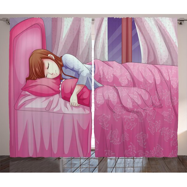 Anime Curtains 2 Panels Set Cartoon Illustration Of A Sleeping Girl Japanese Culture Manga Themed Style Artwork Print Window Drapes For Living Room Bedroom 108w X 90l Inches Pink By Ambesonne